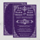 Here are Gothic Victorian inspired wedding invitations in purple featuring ornaments, scrolls, scroll work, a banner, a floral scroll frame, damask pattern background, and other old world style details all inspired by the Gothic mediaeval period and Victorian era. Elegance and refinement at its finest. You can customise the sample text fields to your liking.
