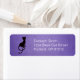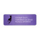 Stylish purple cat label with a beautiful illustration of a gracious evil black cat with glowing eyes on a grunge textured dark purple background.