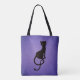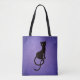 Beautiful black cat all over printed tote bag with a vector illustration of the silhouette of an evil cat with a beautifully curled tail over purple textured background. Its evil eyes glow in the dark. This evil kitty bag will be great for Halloween as black cats are this one of the symbols of this holiday. You can see this beautiful cat bag in red and in blue. Just check out the Evil Cats collection at my store.