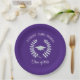 Purple Graduation Cap and Leaves paper plate. All elements of this design are editable.