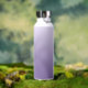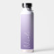 A custom personalised stainless steel water bottle in a modern soft purple gradient design. The trendy handwriting script font adds a unique touch when adding your name.