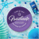 Be proud, rejoice and showcase this milestone of your favorite grad! Celebrate with these simple, modern yet retro, minimal custom paper plates. Bold, graphic, white handwritten script calligraphy, sans serif typography and a white hand drawn grad cap icon overlay both a dusty and deep purple background. Personalize the custom text with your grad’s name and address. Personalize the custom text with your graduate’s name, class year and school or special message. Available in 2 sizes: 7” or 9”, round or square. Matching invites, thank you cards, hand fans, banners, yard signs and other graduation goodies are also available in this retro and trendy collection. Guaranteed to add stylish fun to their special party!