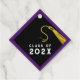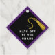 Creative graduation favour tags to decorate your favourite graduate's party favours and grad gifts featuring black and gold cap design on purple background. To customise edit text to add senior class year.