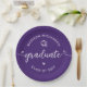 Purple Graduation Script Hearts Cap Icon Modern Paper Plate