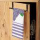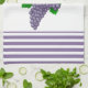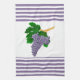 This kitchen towel features a purple and white striped background with a graphically designed bunch of grapes in the centre. This towel would be perfect when used at a wine tasting party or to decorate a kitchen with a grape theme.