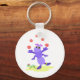 Take a bit of whimsy wherever you go with this fun keychain featuring a quirky purple creature juggling red balls, joined by a grasshopper friend. This playful cartoon design makes a great gift for kids, animal lovers, or fans of unique art. Add charm and personality to your keys, bags, or backpacks with this eye-catching accessory.