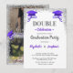 Purple Gray double Graduation Party 2 photo Invitation
