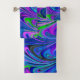 Purple Green and Blue Abstract Marbled Swirls Bath Towel Set