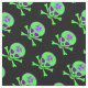 Green, purple and black biohazard symbol skull and crossbones pattern fabric. Choose from several types of fabric in natural or synthetic fibers. Pattern size may be adjusted via the "customize" option on the product page if you need a specific size for an art project, scale model, doll clothes, etc.