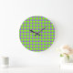 Purple Green Chequered Diamond Pattern Large Clock