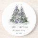 This elegant Christmas coaster features beautiful purple and green watercolor Christmas trees adorned with glass ornaments and surrounded by wrapped presents. The ornament also includes the MERRY CHRISTMAS message in an elegant font. Personalize the ornament by adding your family name and the year.