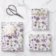 A pretty collection of purple and green floral watercolor wrapping paper sheets. Set of three.