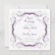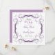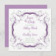 Purple, green, and white abstract floral scroll wedding save the date announcement. Purple and green is a popular wedding colour theme for spring or summer weddings. Elegant abstract floral scroll border purple and green wedding save the date.