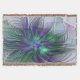 Purple Green Flower Modern Abstract Art Fractal Throw Blanket