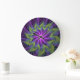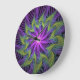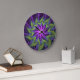 Purple Green Flower Modern Abstract Fractal Art Large Clock