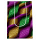 PURPLE GREEN GOLD GLITTER LOOK MARDI GRAS MEDIUM GIFT BAG