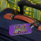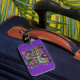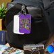 PURPLE & GREEN MARDI GRAS BUS & FEATHERS LUGGAGE TAG