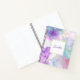 Spiral notebook with a beautiful artistic painting. Created with flowing alcohol inks. Purple, green and blue colours flowing together. Thin wavy ribbons of gold intermingle with these soft gentle colours. A white square with a faux gold foil border layered over top with your personalised name inside.