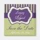This purple, white, and green striped damask save the date magnet matches the wedding invitation shown below. The text is all customisable.