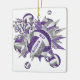 This cute girl's volleyball themed ceramic ornament features an "explosion" of purple, grey and white volleyballs in varying sizes and purple, grey and white star shapes - the purple and grey volleyball panels are blended with a girly, floral kaleidoscopic pattern - customise with player's or fan's name and commemorative year on the front and back - katz_d_zynes