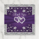 Keep with your purple and silver Love Hearts wedding theme with this romantic wedding favour tag with images of a pair of joined hearts overtop of a purple ribbon image running across the centre of the tag. There is a simulated silver border around the edges of the tag on the front and back sides. The front side says, "Thank You" in grey and the back of the tag is personalised to say, "Thank you for sharing our special day with us!" and also has the names of the bride and groom and the wedding date on a purple background on the back with a silver floral arch at the top. If you need any additional matching items, please email your request to niteowlstudio@gmail.com or use the Zazzle chat feature to get in touch.