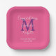 This paper plate can be any background colour you select. Background is pink; monogram is aubergine purple in a classic serif font; text is fancy white script. This simple, minimalist design is great for a high school, college, or university graduation party. All Rights Reserved © 2025 Alan & Marcia Socolik..