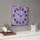 Add a touch of your adventurous spirit to any room with this unique purple and black square wall clock designed for skateboarding enthusiasts. The clock face is adorned with a lively assortment of skateboarder silhouettes in mid-air and on the ground, capturing the dynamic energy of the sport. Add your name, a significant date related to your skateboarding journey, a favourite skateboarding trick you've mastered, or a simple message that inspires you every time you check the time. This piece is a perfect blend of functionality and personal expression, making it a thoughtful and unique addition for any skater.