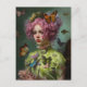 Purple Hair Green Shirt Ivy and Butterfly Woman Postcard