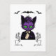 Purple Halloween Cat with Bats and Skeletons Postcard