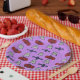 Fun Halloween print on purple back ground.