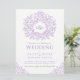 Purple hand drawn leaf monogram art wedding invitation