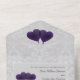 Invite guests to your upcoming wedding with a Purple Heart Balloons All in One Wedding Invite. Invite design features a pair of heart balloons against a delicate lace damask background. Personalise with the groom and bride's names along with the wedding date and location. Additional wedding stationery available with this design as well.