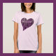 This pretty t-shirt with purple and magenta asymmetrical heart with streaks of black and grey has that "je ne sais quoi" or that elusive quality that cannot be described easily, but can be seen as a artsy unconventional wild heart design. As said in French, i don't know what, but this unique chic tee shirt has it.