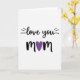 This greeting card features the words “love you Mom” centered on a plain white background. The message is split across two lines, with “love you” on top and “Mom” underneath. “Love you” is written in flowing black lettering that looks like it was drawn with a brush, and small dash marks sit to the left and right to add a little emphasis. Below that, “Mom” appears in thicker black lettering, and the “o” is replaced by a deep purple heart that stands out right away. The purple heart becomes the main focus and makes the whole design feel extra caring ❤️. With just a few elements and lots of open space, it feels honest and easy to read, like something you truly mean. It’s a sweet way to show your love and share Valentine’s Day sentiments 🥰.