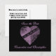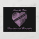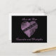 A large purple heart with gears and swirls on a black background and space for your info on a pretty save the date post card. Add your text in the text boxes in place of mine.