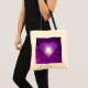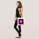 Modern design with a shining, sparkling purple and white heart on a glowing purple, white and black background. Bag with a purple, black and white customisable design for you to personalise with your own text, images and ideas. Created by Jess Perry using original photographs and digital techniques.