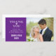 Purple Heart Wedding Photo Thank You Cards: Use these elegant photo cards to send out to your guests to say thanks for being a part of your wedding celebration. Completely customise with your own message, names and picture. If you wish to change the graphic, please contact me through my store. AntiqueChandelier© http://www.antiquechandelier.ca