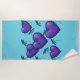 Pretty Purple Hearts and turquoise winged dragonflies on this great beach towel. Perfect for a day at the beach or the pool, picnic or spa!