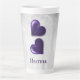 Enjoy your latte or morning coffee with a Purple Hearts Personalised Latte Mug. Mug design features a a pair of hearts, a soft white leafy vine against a light grey grunge background with an area to personalise with your name. Additional gift items available with this design as well as a variety of colours.