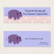A cute purple hippopotamus on a soft mauve and pink and white polka dot background. A sweet way to say thanks! Customise with name on the back as desired.