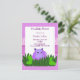 A cute purple hippo baby shower invitation. Jungle plants and a pink animal print border accents it. Customise with all of your own information as desired.