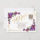 Purple Hot Pink Floral Gold Script QR Code RSVP Card