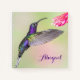 Personalised notebook featuring the beautiful violet sabrewing hummingbird flying though a cloud forest towards a pink flower. Easily personalise with a name to create a unique beautiful item for hummingbird, garden and nature lovers. Photo taken at Bosque de Paz Reserva Biologica, Valle del Rio Toro, Alajuela, Costa Rica.