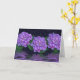 Purple hydrangeas with water reflection and raindrop overlay on black for thinking of you.
