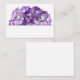 Purple floral blank place cards with hydrangeas at the top of white cards.