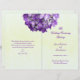 Purple hydrangea flower wedding program template to customise with your own text and wording, to be folded in half after purchase. A large floral image at the top will appear half on the front page and half on the back. Text is matching purple on a lightly lined background for a more rustic look. All four sides have templates to hold all your ceremony information, list of special people and a thank you message on the last page. Please check text and spelling carefully as this program WILL NOT BE PROOFREAD before shipping. **Use this matte finish, white paper only as the glossy will not fold well.