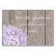 Pretty purple hydrangea mason jar bridal shower words of advice cards with a wooden fence, antique damask pattern lace background and stitched light purple ribbon look design. This words of wisdom for a happy marriage card is perfect for a rustic chic, country, farmhouse, garden party or barnyard style bridal shower party. The mason jar can be personalised with the initials of the bride and groom. Designed by Chrissy H. Studios, LLC. All rights reserved.