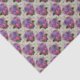 A vintage pattern of pretty purple hydrangeas over a newsprint background