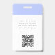 Simple, stylish corporate ID badge which can easily be personalised with your employee's ID photo, name, position, company logo, business details and QR code or barcode. The stylish design features modern minimalist typograhy and a colour block banner in lilac lavender purple to stand out from the crowd. The image shown is for illustration purposes only to be replaced with your own photo. The placeholder image is of a happy woman with wavy blone hair.