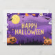 Celebrate the spooky season with this purple illustrative Happy Halloween flat holiday card. The front showcases a playful design, while the back includes fully editable text so you can personalise your own message. A perfect way to send festive greetings to family, friends, or coworkers.